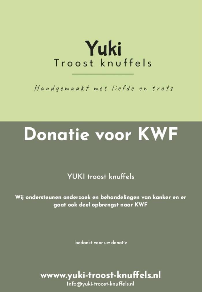 Omdat wij zelf in ons team te maken hebben met kanker,doneren wij ook een deel van de verkoop van onze Yuki's aan het KWF. We staan ook regelmatig op markten en op onze kraam staat dan een spaarpot. Wij vinden dit een mooi doel, moet veel meer onderzoek gedaan worden zodat deze rot ziekte nog beter behandeld kan worden ❤️